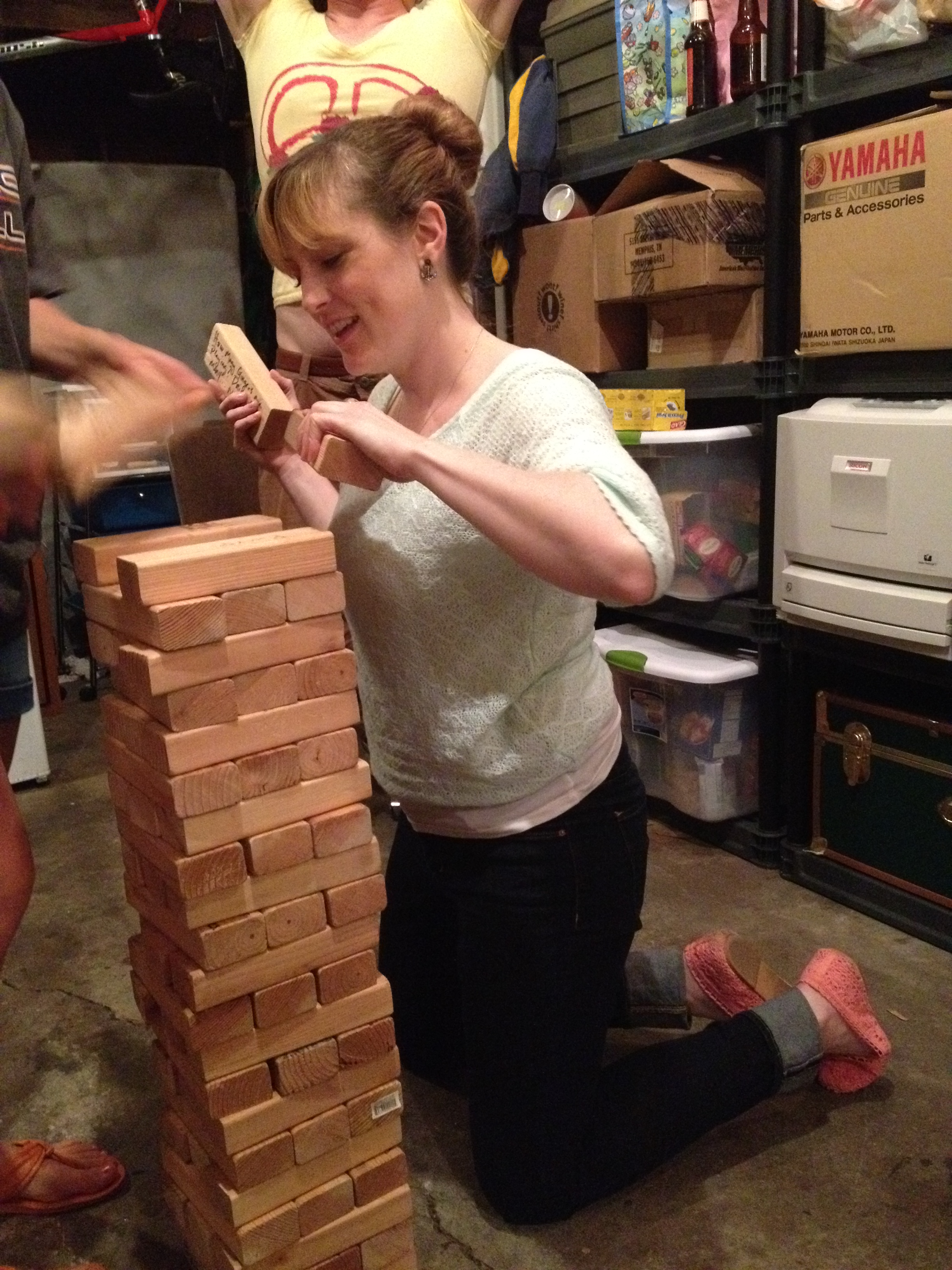 Setting up Jenga after knocking it down 1 of 2 times :/
