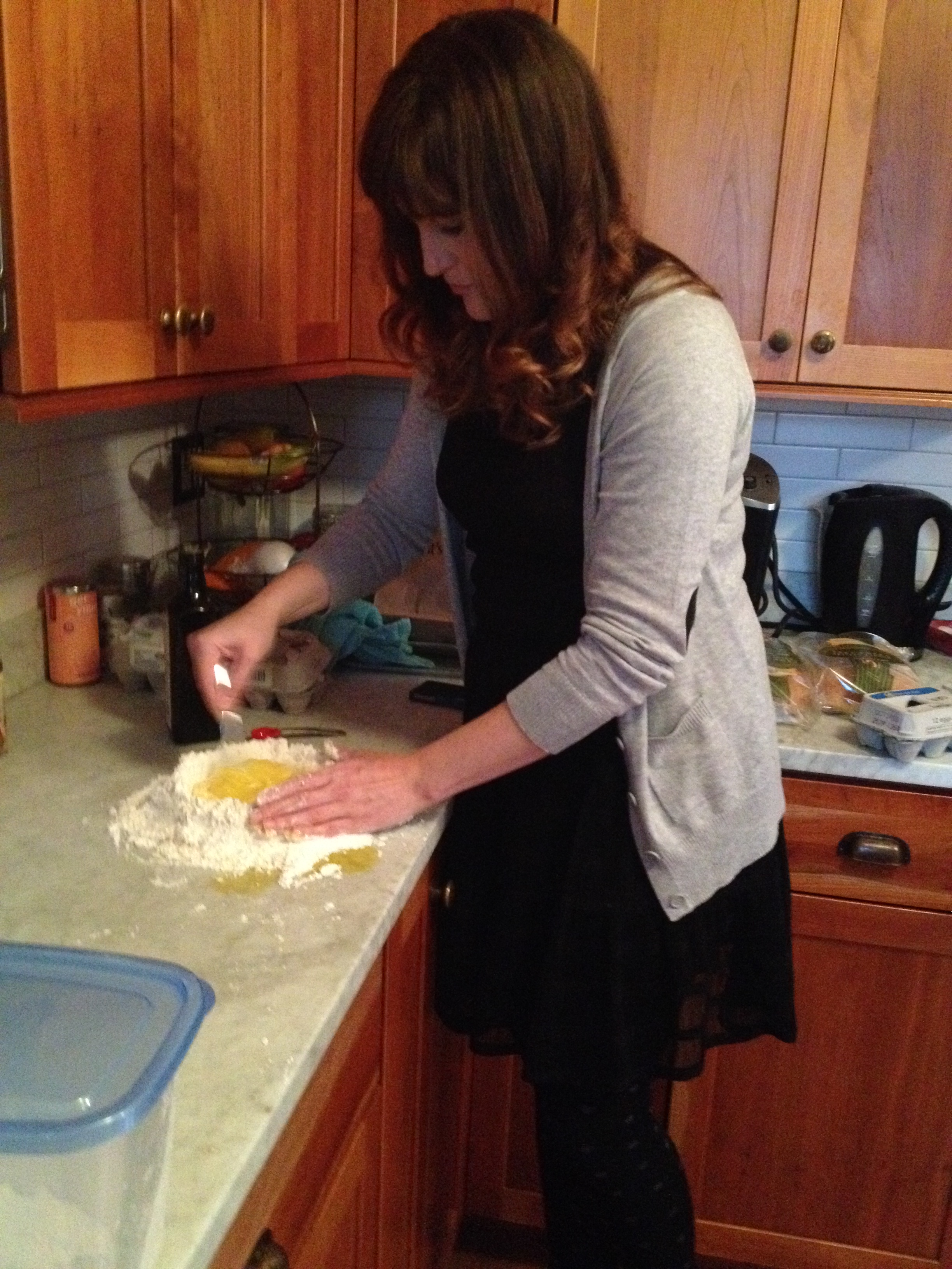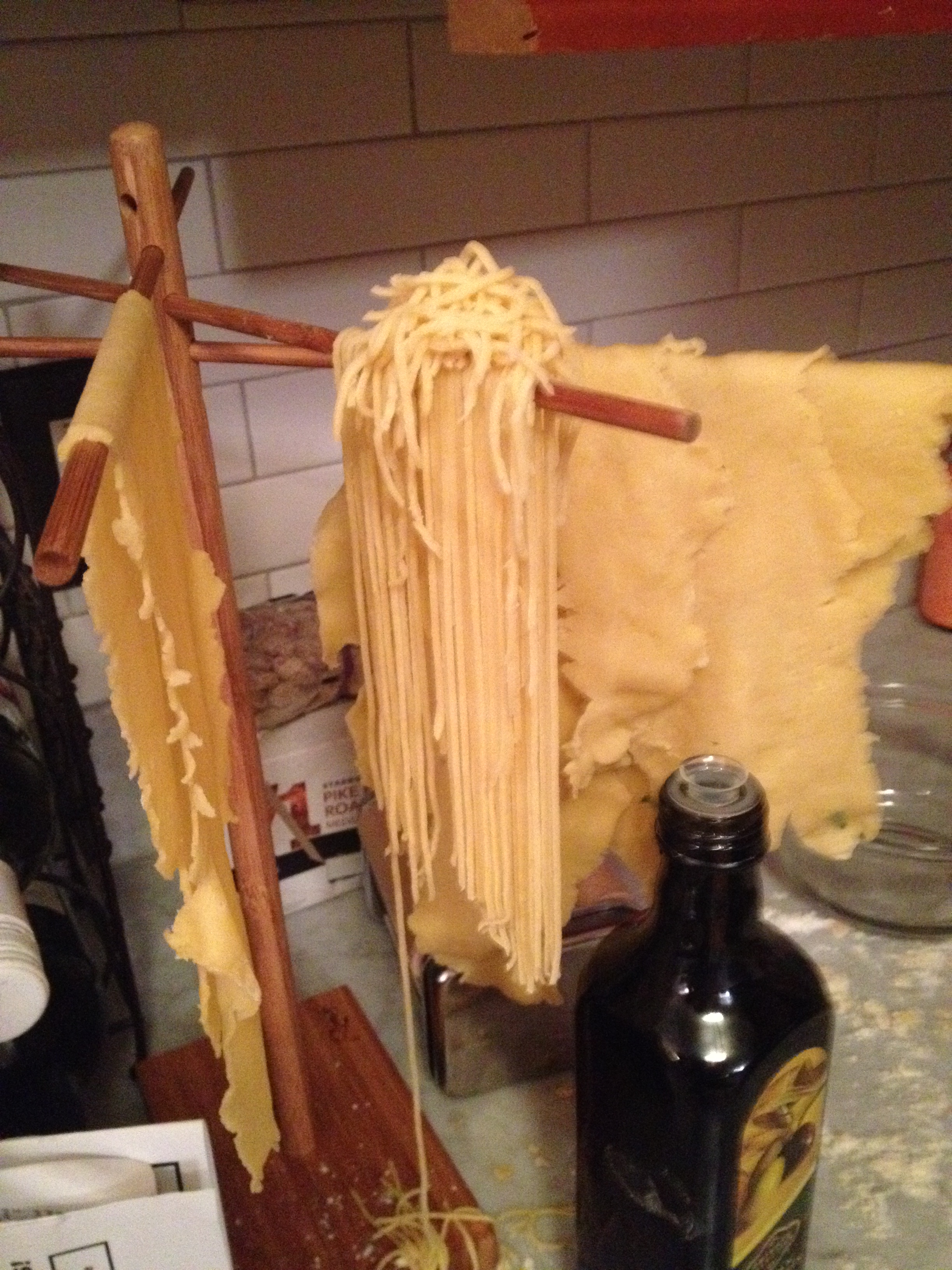 I mixed up the pasta dough and rolled out some sheets for ravioli and cut some for spaghetti. I had some solid help too!